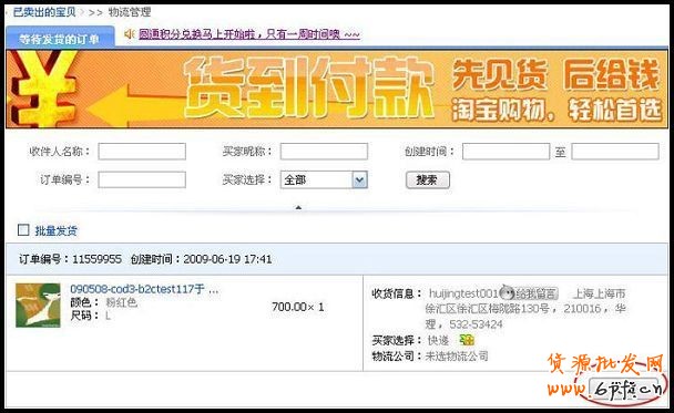 點(diǎn)擊“確認(rèn)”后完成發(fā)貨。貨到付款的訂單不需要賣家填寫運(yùn)單號,由物流公司直接錄入。