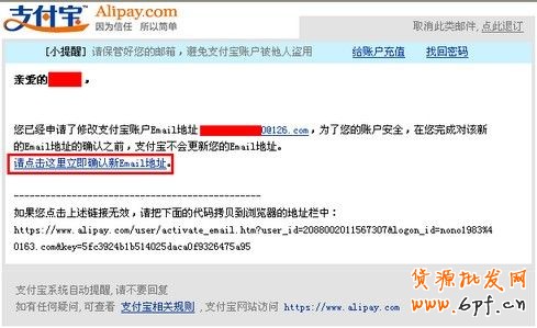 3、請到新郵箱收取激活郵件進行激活,“請點擊這里確認新Email地址”;