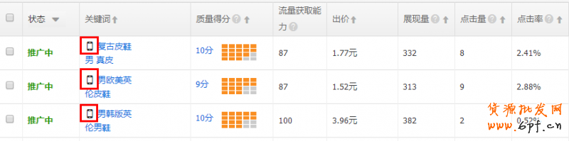 移動標識關鍵詞:在“關鍵詞”一列展現手機圖標做為標識。該關鍵詞如果具備無線展現資格,則展示手機圖標,反之不展現。這就是其中一個寶貝池。
