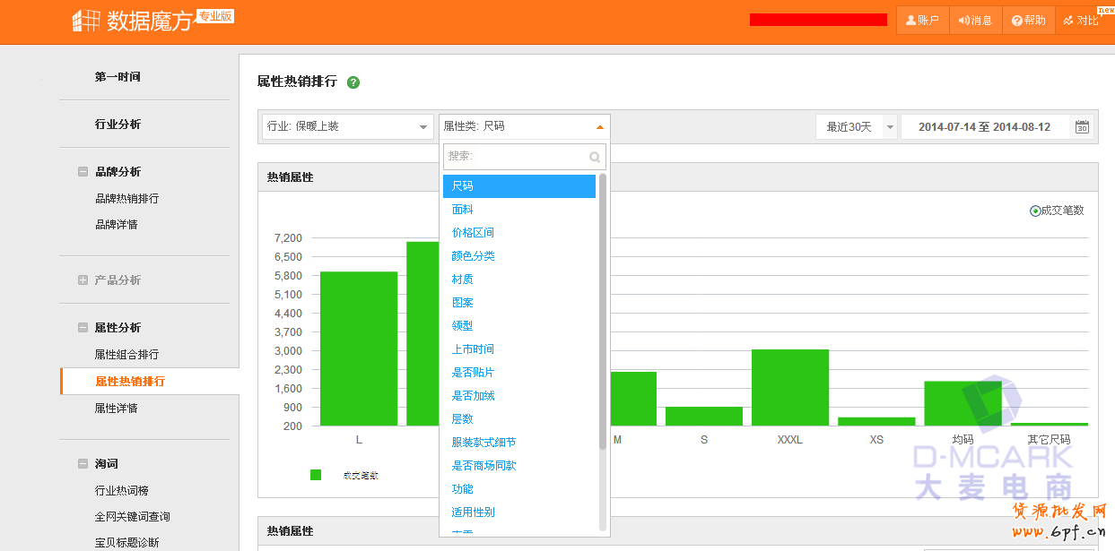 有了子行業(yè)大方向,我們接下來要從幾個(gè)方面把握寶貝屬性,規(guī)劃寶貝結(jié)構(gòu),分別是:寶貝的價(jià)格區(qū)間、顏色、材質(zhì)、圖案、領(lǐng)型等等,這些寶貝屬性都可以在數(shù)據(jù)魔方查找。查找路經(jīng)是屬性分析=》屬性熱銷排行、最近30天中找到數(shù)據(jù)來匯總,歸納,分析和總結(jié)。