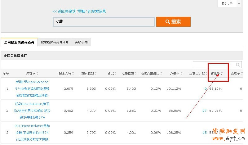 只要搜索“女鞋”,按轉化率排序,然后往下拉就可以找到。簡單說下我的思路和判斷方法:首先,搜索的詞最好選擇一級類目詞或者一些功能性的詞,原因是二級類目詞的話基數小。然后,要選擇競爭強度大于1的詞,低于1就屬于競爭大了,而且搜索指數不能低于3000,過低的話市場空間就小了,也難賺錢。