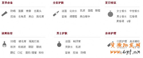 目前為止,我還算是一個化妝品門外漢,但我覺得,化妝品產品的分類至少需要切以下幾個維度:一是按功能分,有護膚類,彩妝類,美發美體類;二是按性別分:男士專用,女士專用;三是按膚質分:油性皮膚,中性皮膚,干性皮膚;第四,按品牌分,歐萊雅,The Face Shop,相宜本草等;第五,按熱門關鍵詞;第六,按價格區間。。。
