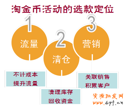 首先,我們要確定店鋪參加淘金幣活動的目的,也就是活動定位。總體而言,選擇做淘金幣活動的賣家一般有以下三方面的訴求——流量、清倉和營銷。