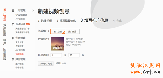 8、新建視頻創(chuàng)意(填寫(xiě)推廣信息):