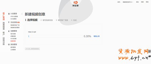 7、新建視頻創(chuàng)意(填寫(xiě)視頻信息):填寫(xiě)完成后,選擇“下一步,填寫(xiě)推廣信息”。