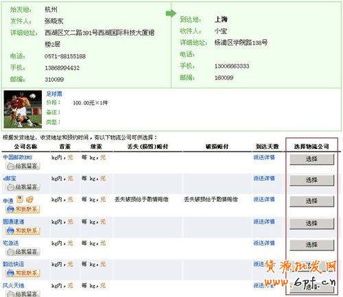 在頁面的下半部分,會列出所有可以選擇的物流公司,從列表中,你還可以直接對比各個物流公司的價格、賠付等信息,以便更好地幫你決策。然后,請點擊最后一列的“選擇”按鈕(如下圖)。選擇出相應的物流公司,并在彈出的確認對話框中選擇“是”。