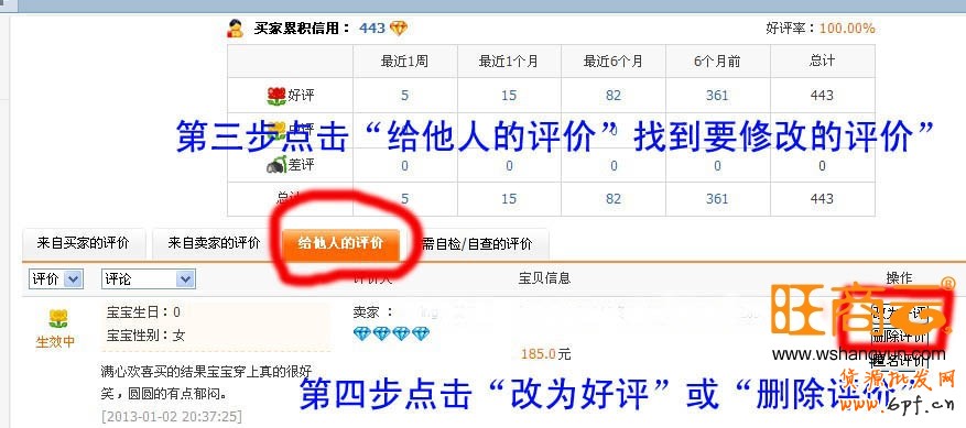 第二步,買家給出評價后,賣家及時處理,給出評價后一般買家都還會在線的,所以這樣用旺旺及時溝通很重要,要是沒有在線咱也可以電話或短信的方式聯系買家,當然咱的態度很重要。還有一點很重要,一定要給出解決的方法,如退貨或換貨之類的。當意見達成一致就需要買家修改評價了。修改的方法接下來會一一介紹給大家。先曬一下咱店的成果當然還在努力當中。