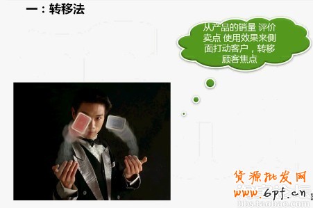 轉(zhuǎn)移法從字面上也是非常好理解是我們從產(chǎn)品的銷量、顧客的好評、產(chǎn)品的功能賣點和使用效果等等來側(cè)面打動顧客轉(zhuǎn)移顧客關(guān)注的價格焦點。這里有一個顧客要買塑身衣,但我們店里是兩件以上才包郵的哦,通過溝通顧客是想一件也包郵,首先我們是委婉拒絕了下(一定要帶上旺旺的賣萌表情哦)隨后馬上掏出一個小贈品引誘引誘一下顧客,這就轉(zhuǎn)移了顧客關(guān)注的重點。接著我們再說了塑身衣的效果(因為顧客買的就是效果):每天穿幾個小時再加上適量的運動,一兩個月下來效果不錯哦。這就借用了產(chǎn)品效果的轉(zhuǎn)移。或我們可以利用產(chǎn)品的賣點、銷量、回頭客等來轉(zhuǎn)移顧客關(guān)注的焦點,并且把塑身衣的賣點“塑身”轉(zhuǎn)速給顧客,顧客就很高興下單了。因為這就是顧客想要的,她買的就是效果,有了效果價格就是其次的了,再便宜白送給她沒效果不是她要的目的。顧客想要塑身的效果,我們就要把它的賣點很清楚地向顧客說明介紹促成顧客下單提高轉(zhuǎn)化率。