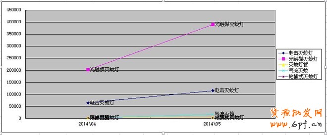 上圖是2014年4月份和5月份的滅蚊燈的總銷量。