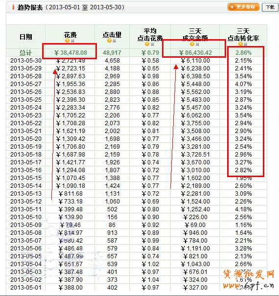 寶貝初期的推廣預算日均300元,推廣日期從12號開始,通過轉化報表數據,我們繼續對精準含“雪紡襯衫”的詞都進行了加強調整,把無效的詞刪詞或降低力度;經過對詞的特定調整后,增加了流量,雖然花費上升了但是保證了轉化沒下降,同時成交金額也是在逐步提升。