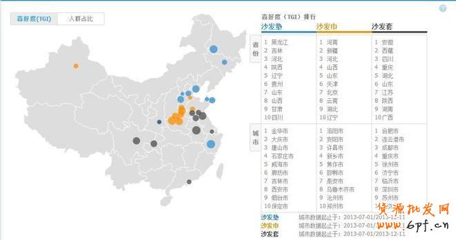 首先來(lái)看下訪客地區(qū)占比。下面我以沙發(fā)墊為案例給大家講解,那么在沙發(fā)墊這個(gè)類目我找出了三個(gè)搜索程度比較高的詞作為對(duì)比分析。