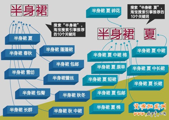 再利用這,0個(gè)關(guān)鍵詞繼續(xù)搜,如搜索“半身裙夏”,淘寶搜索引擎又會(huì)給你推薦10個(gè)關(guān)鍵詞,我們繼續(xù)按照這樣的方法進(jìn)行挖掘,一般推薦挖3一4層,把所有的關(guān)鍵詞都保存起來(lái)。