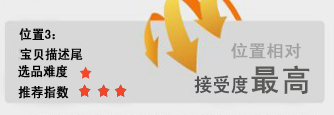 寶貝描述完以后插入關聯商品,這個位置相對接受度最高。首先,消費者能花費很長時間瀏覽寶貝描述,證明該消費者極其喜歡這款產品,購買欲望也相當強烈。那在這個時候,加上相關產品、熱賣產品或者配套產品推介的時候,無論從點擊率、購買率來看,都是明顯提高的,也不容易造成反感。
