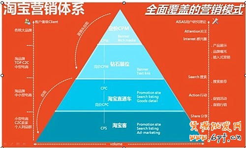淘寶付費流量產品處于呈金字塔形式分布的狀態。如上圖: