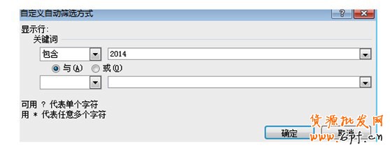 舉例:查看“2014”這個(gè)關(guān)鍵詞的寶貝流量和轉(zhuǎn)化率。首先在excel表格中,進(jìn)行文本的篩選,再選擇“包含”,然后在包含彈出的對話框中,查找表格中含有“2014”的所有關(guān)鍵詞。