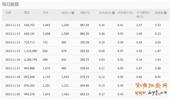 2013年雙11成功大促后持續引流,延長活動周期成功案例數據: