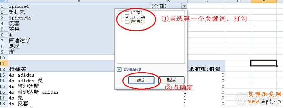 在關鍵詞列進行篩選,選出包含iphone4的關鍵詞