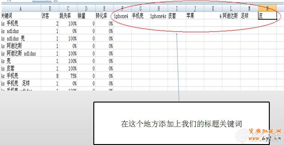 在下載下來的表格中,刪除間接銷量列 ,把直接銷量、直接轉化率和直接訪客全部修改成銷量、轉化率、訪客。
