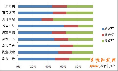 細心的朋友們就會發現,該賣家的主要訪客來源是淘寶搜索、買家中心及直接訪問的。可這些客人真掏腰包時,就那些直接訪問的客戶最實在。可見這些客人把店鋪記得在心里了,各種瀏覽器收藏店鋪,比那些在買家中心收藏店鋪的客人還更真誠。試想,在瀏覽器中保存一個網店的重要性與在一個淘寶賬號下保存一個店鋪的重要性,孰高孰低呢?可悲的是,那些通過淘寶搜索進店購買的客人,是最精打細算的。這也難怪,沒購買的客人可能在搜索頁中找到更便宜的寶貝了。另外有兩類群體,就是我們“古董級”的客人了,分為“懂行的”和“愛逛商場的”。那些來自門戶的客人,雖然不多但各個是行內人士,消費能力絕對不低。來自于商城的客人,想必是由于淘寶刻意地打造,商城客人是網購高端人群的代表。