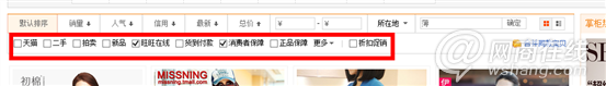 好了,我們繼續來看這個服務篩選項,也就是我們自己店鋪所參加的一些服務,當然這里有沒發現某些的項目是已經被勾選了,這是系統幫你鎖定的,比如說這個子類目看到的是,旺旺在線和消費者保障,如果店鋪沒滿足這兩點也是不會展示的,所以這個大家要注意了!