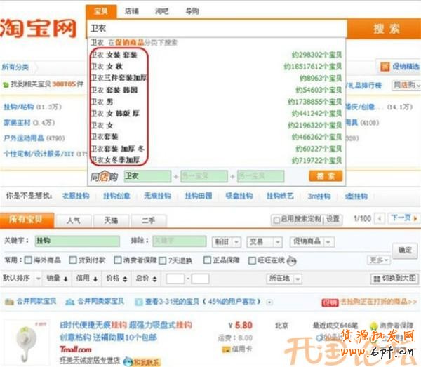 當掌柜自己絞盡腦汁想盡各種辦法還是找不到足夠多的關鍵詞,這個時候就可以借用同行的思維。把要推廣的寶貝在淘寶搜索框搜索,從搜索出來的商品列表標題中尋找相關的關鍵詞。因為目前寶貝標題可以使用30個字,很多掌柜為了能夠讓寶貝能夠獲得較好的自然搜索排名,會在寶貝標題上堆砌關鍵詞,而這些關鍵詞也是咱們可以借鑒利用的。