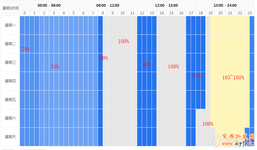 經(jīng)過自己店鋪分析,8:30~11:30,13:30~16:00,7:30~22:30為高峰期,從23:00~01:30為下滑階段,從2:00~8:00為低谷期,牽扯到周五~周日的成交會與周一~周四的成交有所區(qū)別,于是做了如下時間比例: