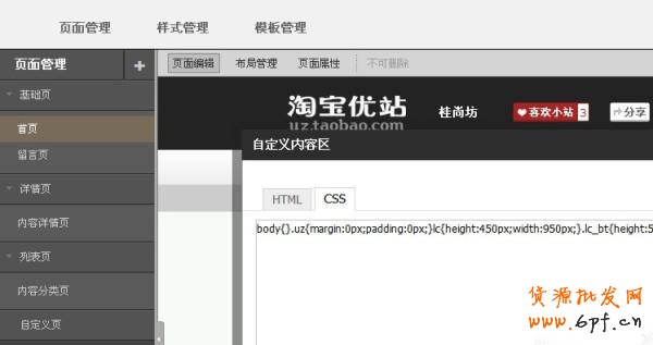 2、回到“頁面編輯”,找到“自定義模塊”,點擊“編輯”按鈕編輯。在編輯按鈕中,切換到源碼界面,將自己寫的自定義網頁代碼粘貼到源碼框中,并保存。若你還有CSS式樣,可以點擊“CSS”按鈕,把你的CSS式樣放進框中,如下: