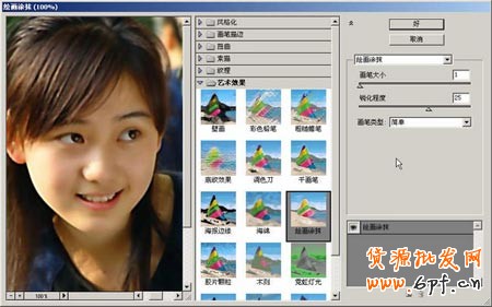 5、選區已經做出來了,然后把紅副本通道作為選區載入,回到圖層面板,將背景復制一層,不要取消選區。執行濾鏡-藝術效果-繪畫涂抹,參數如圖