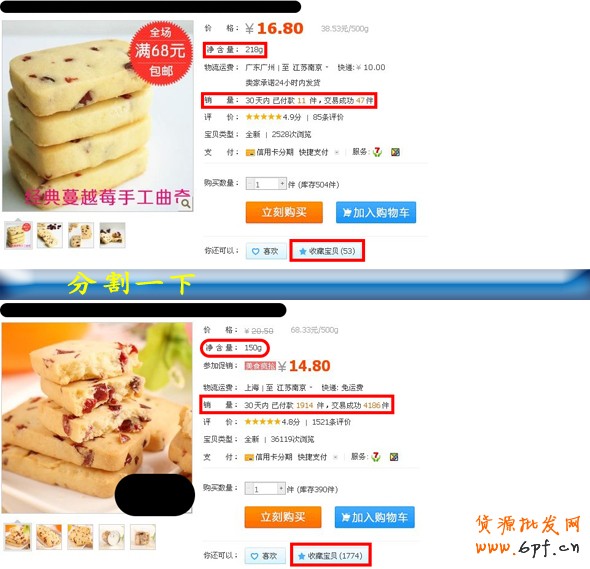 但通過小禹框出的數(shù)據(jù)顯示,很明顯下面的銷量和人氣都更旺盛