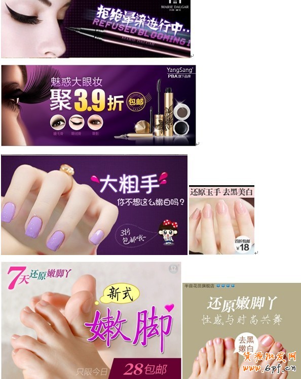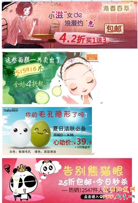 做鉆展的人分析每月的優(yōu)秀鉆展素材已經(jīng)是門必修課了,有研究的人肯定能發(fā)現(xiàn)活動類型的鉆展素材會常常出現(xiàn)在優(yōu)秀素材里,可是一直全場X折、9.9元起,品牌還要不要做了?常規(guī)銷售要怎么辦?所以我把2012年1月到2013年1月,一整年的常規(guī)素材做了整理,發(fā)現(xiàn)有以下幾個類型的廣告點擊率都比較高,因為我是做美妝,所以就做了美妝素材,其實方法論是和其他類目素材是共通的:找出優(yōu)秀素材之間的共性。