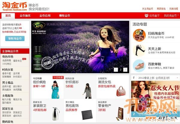 在首頁面第一頻,領取淘金幣來加強顧客重復訪問淘金幣頁面,首焦來突顯最核心產品(相對淘寶幣來說就是廣告明星產品), 邊上活動專題,引導顧客的深度訪問