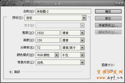 第一步:打開PS新建一個1920像素*150像素的文件.