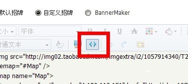 第九步:復制好代碼回到店鋪裝修,點一下店招里的"< >"這個符號,把代碼粘貼進去。如下圖。