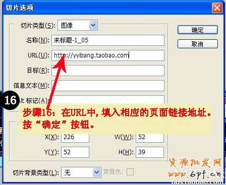 第三階段:利用PS的切片工具,對店招圖片進行切片;編輯切片選項,插入相對應(yīng)的頁面鏈接地址。