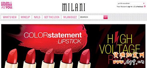 Milani Cosmetics是一家以女性客戶為基礎的網站。因此,主頁上見不到任何的橙色、灰色或是棕色。