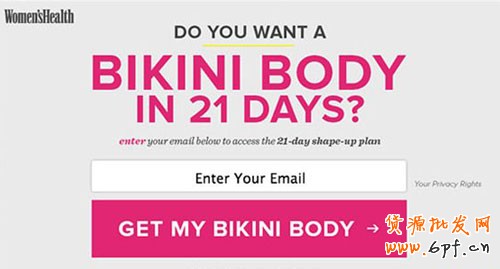 Women’s Health就使用了明亮的紫紅色調彈窗來進行行動號召。他們采用了與女性相關的紫色和粉色,并且都是以明亮色調的方式呈現。