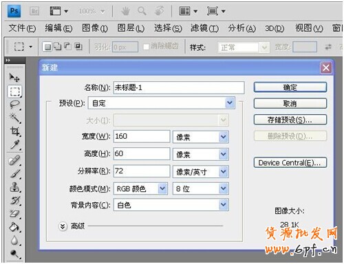 第一步,打開ps軟件,點(diǎn)擊“文件”選擇“新建”一個(gè)圖層,并調(diào)整好圖層的寬度和高度。具體設(shè)置的參數(shù)如下: