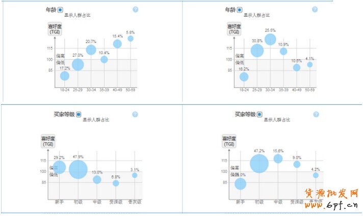 【人群】:買(mǎi)家年齡,性別,消費(fèi)能力,星座,代表職業(yè),人群活動(dòng)特點(diǎn)。就像圖例:在搜索廣場(chǎng)舞的人群中,男性的占比是不低的,這與廣場(chǎng)舞大媽阿姨的潛在認(rèn)知是相反的,但這也可能是一個(gè)市場(chǎng)或店鋪運(yùn)營(yíng)的特殊突破口。