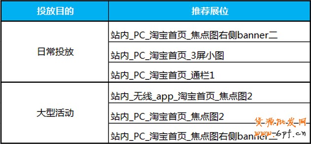 【活動(dòng)前】大型活動(dòng)之前,推廣的主要需求點(diǎn)是展位流量足夠大,曝光度大,cpc相對(duì)較低,且用足夠低的cpc來(lái)引入更多精準(zhǔn)的流量,所要這里推薦的都是cpm和通投出價(jià)相對(duì)較低的展位。