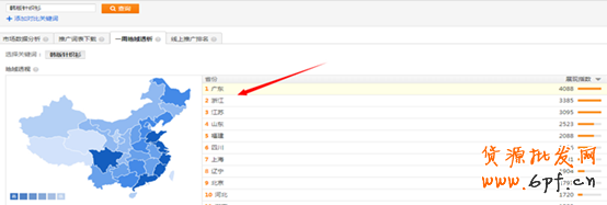 1 這個數據反映了該關鍵詞或者類目一周內在不同地域的推廣情況,利用這個地域分析我們在開車前期養詞的時候可以投放推廣效果最優的前三地域,達到快速提升關鍵詞質量得分的目的。