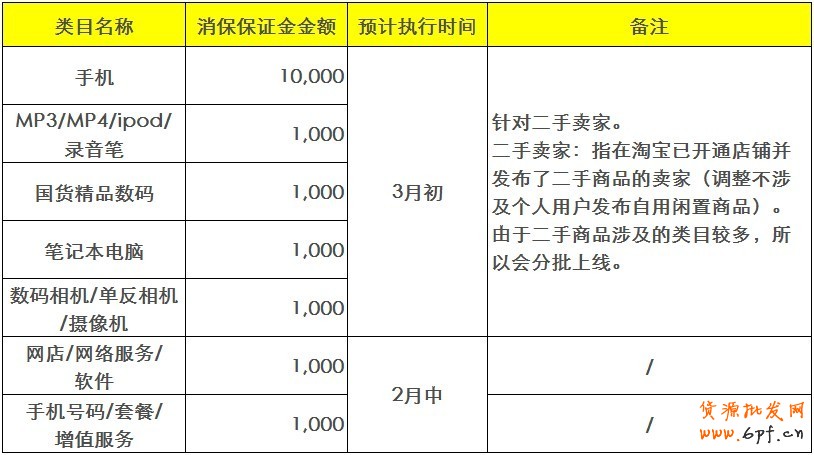 據(jù)悉,手機類商品需繳納的消保保證金金額為10000元,MP3、MP4、ipod、錄音筆、國貨精品數(shù)碼、筆記本電腦、數(shù)碼相機單、反相機、攝像機和網(wǎng)店/網(wǎng)絡(luò)服務(wù)/軟件商、手機號碼/套餐/增值服務(wù)等商品需繳納的消保保證金均為1000元。