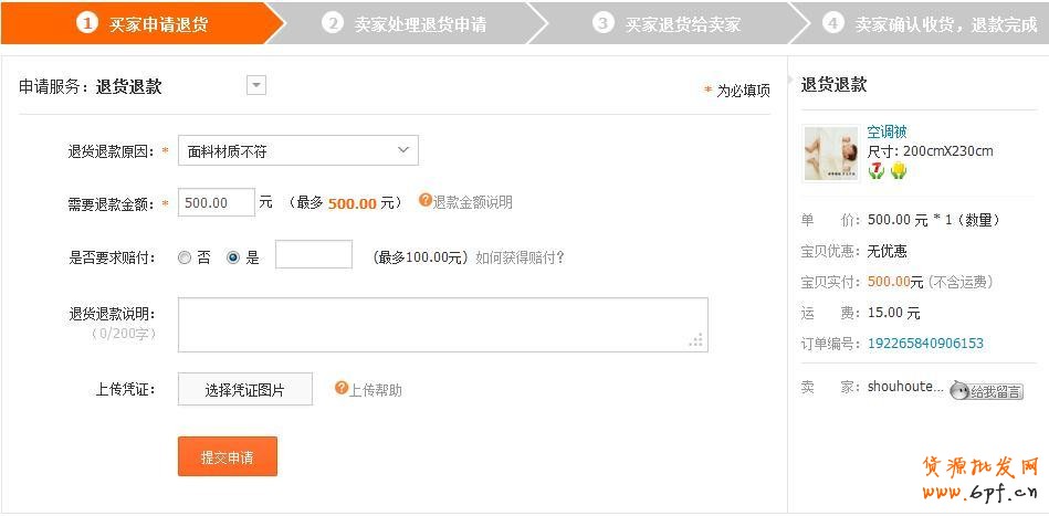D、賣家同意申請(qǐng)后,填寫發(fā)貨信息。