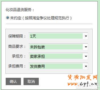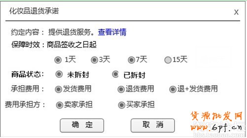 該服務是指賣家承諾店鋪內的商品,支持購買后退貨的服務。賣家可針對不同商品設置不同的服務條件。