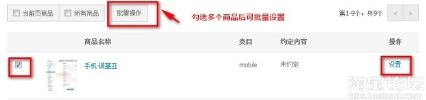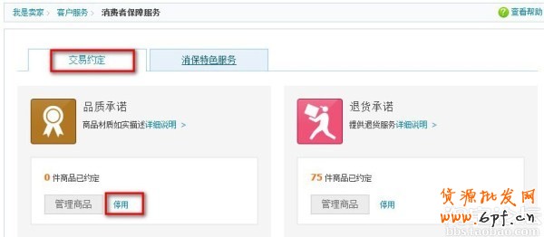 2)單個商品停用,進入賣家中心“消費者保障”中“交易約定”在商品管理界面,選中要停用的商品選擇“未約定”即停用。