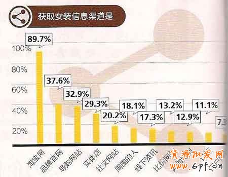 女裝用戶獲取商品信息渠道多樣性高,線上信息比重較大,相應對策:傳播,加強淘寶女裝對外的聲音和形象。