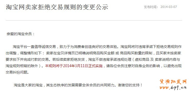 3月11日,淘寶網賣家拒絕交易規則已經調整啦。你還不知道?這條規則是由大眾評審參與判定幫助效驗,最終確定做了規則的調整。你也不知道?