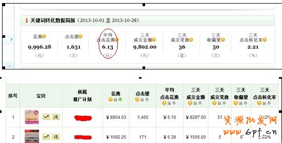 ROI基本持平,但是點擊花費在6塊以上,每天花費300多,高PPC導致流量少,下線快,也是導致ROI不能提升的根本原因。