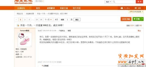 第二不要只是為了流量去論壇,百度的貼吧大家都玩過,難道在上面閑扯的人都是為了賺錢嗎?很簡單不是!那好大家換一種思維的方式把淘寶論壇當成一種閑扯的地方,在里面和別人交流,彼此的調侃。彼此的回帖過程中大家就會不自覺的去您的店鋪里觀看了,流量就來了。