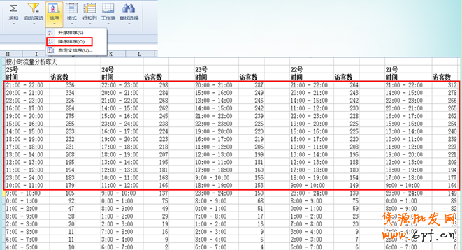把一周的數(shù)據(jù)下載下來(lái),導(dǎo)入到一個(gè)表格里,通過(guò)降序的方式從流量高到低排序,然后每天選取5個(gè)流量高峰時(shí)段,都整合到一列表格里,再通過(guò)篩選方式查看出現(xiàn)頻次高的幾個(gè)時(shí)間段(這里記得剔除掉非正常的流量,比如哪天參加了活動(dòng)流量比較大,或者節(jié)日等,目的是只要正常流量,避免出現(xiàn)數(shù)據(jù)誤差)