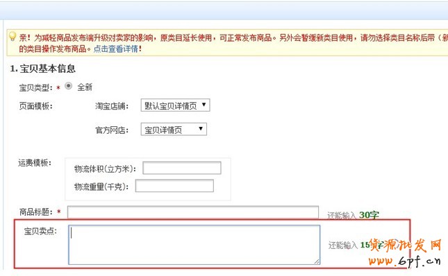 PS:淘寶助理暫時(shí)不支持發(fā)布賣點(diǎn)功能